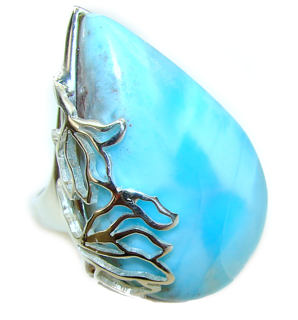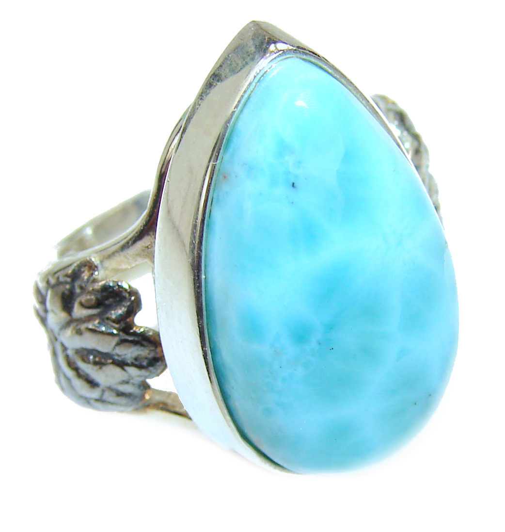 19.5 carat Larimar .925 Sterling Silver handcrafted Ring s. 7 1/4