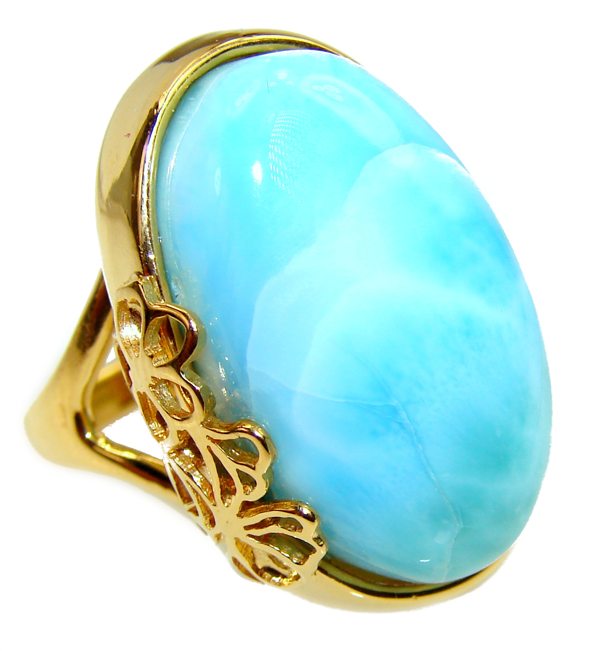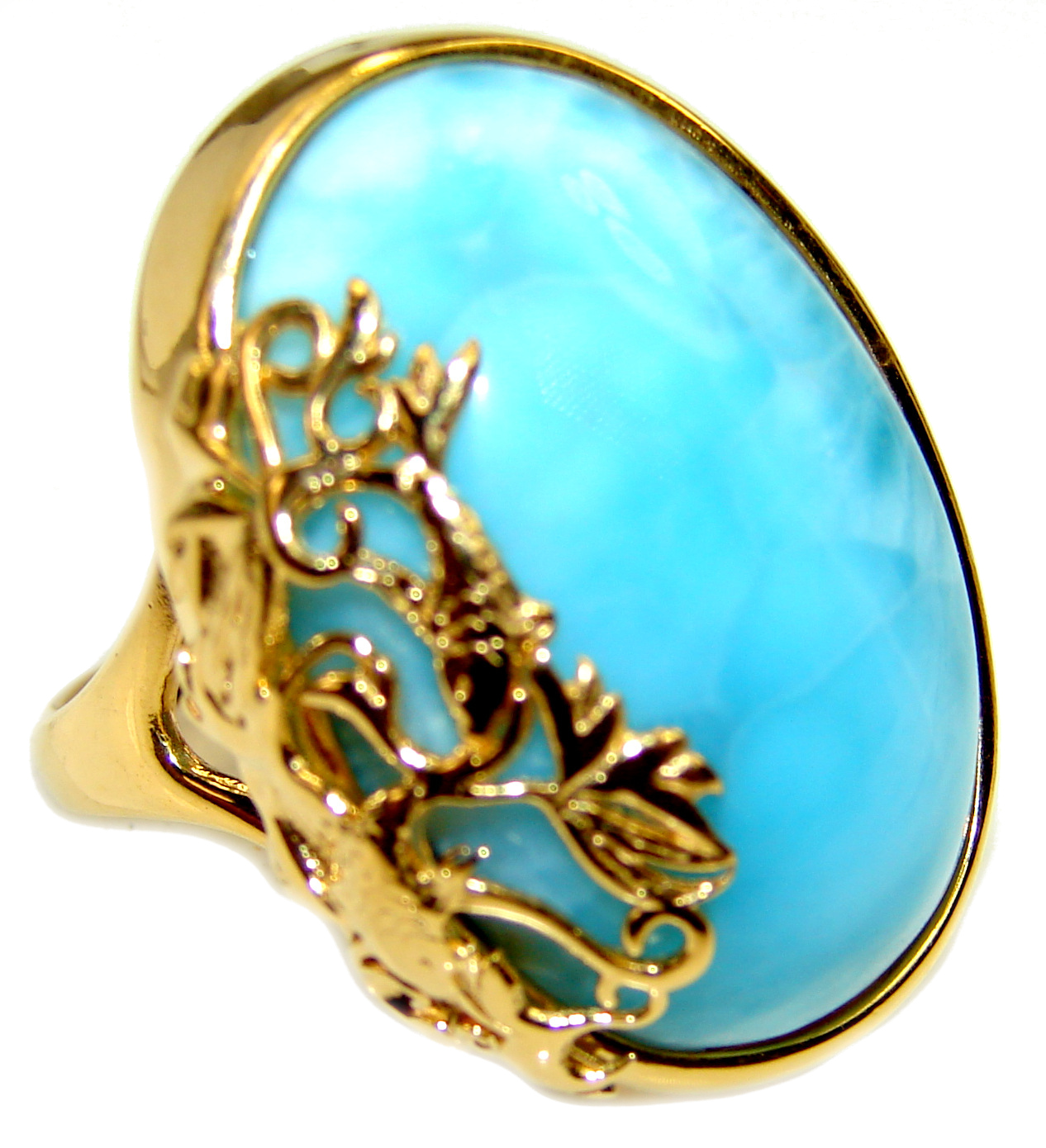 25.5 carat Larimar 18K Gold over .925 Sterling Silver handcrafted Ring s. 7