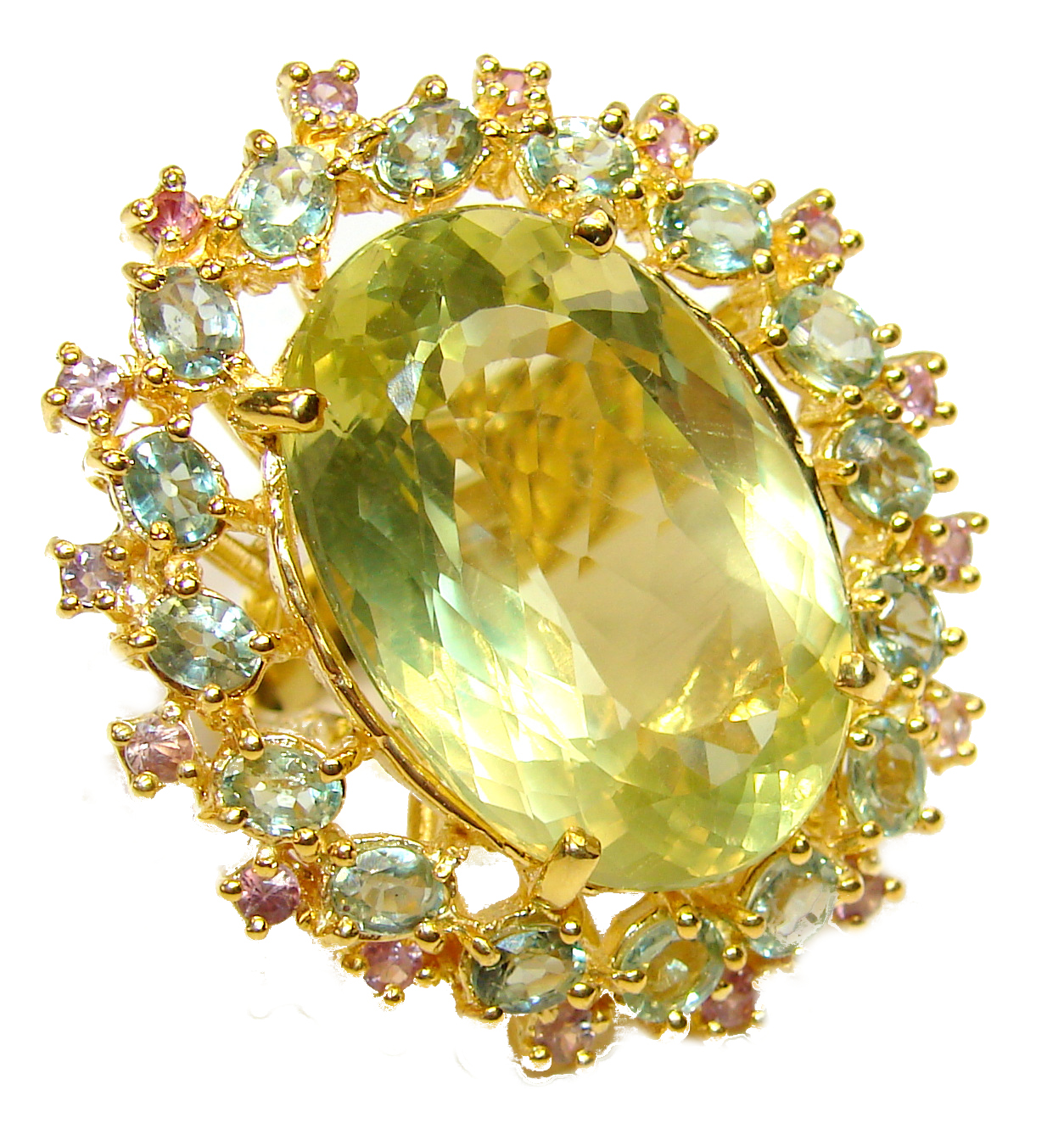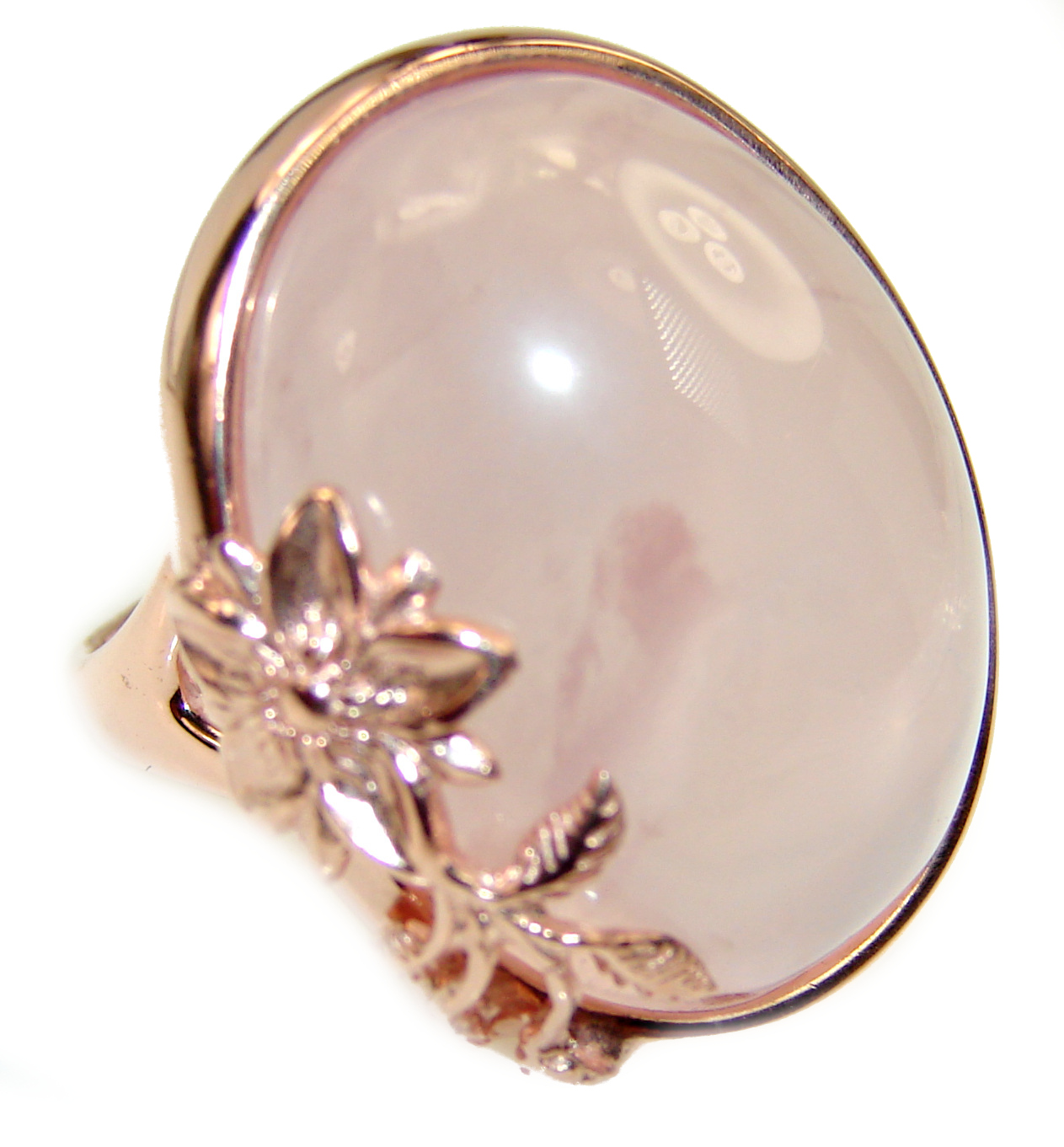 Large 23.2 carat Rose Quartz 18K Gold over .925 Sterling Silver brilliantly handcrafted ring s. 7