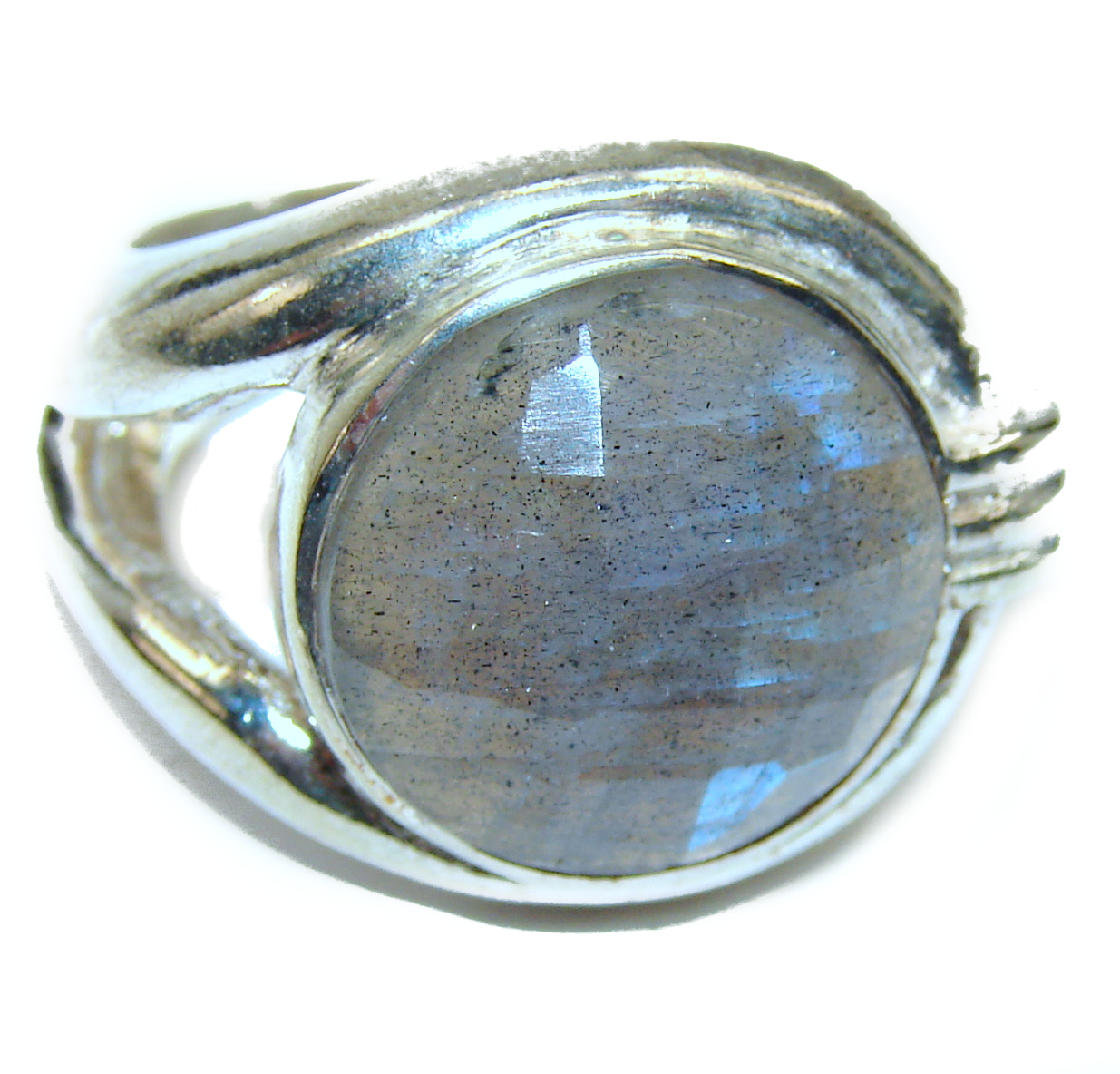 Precious 10.5 carat faceted shimmering Labradorite .925 Sterling Silver handcrafted ring size 7 3/4