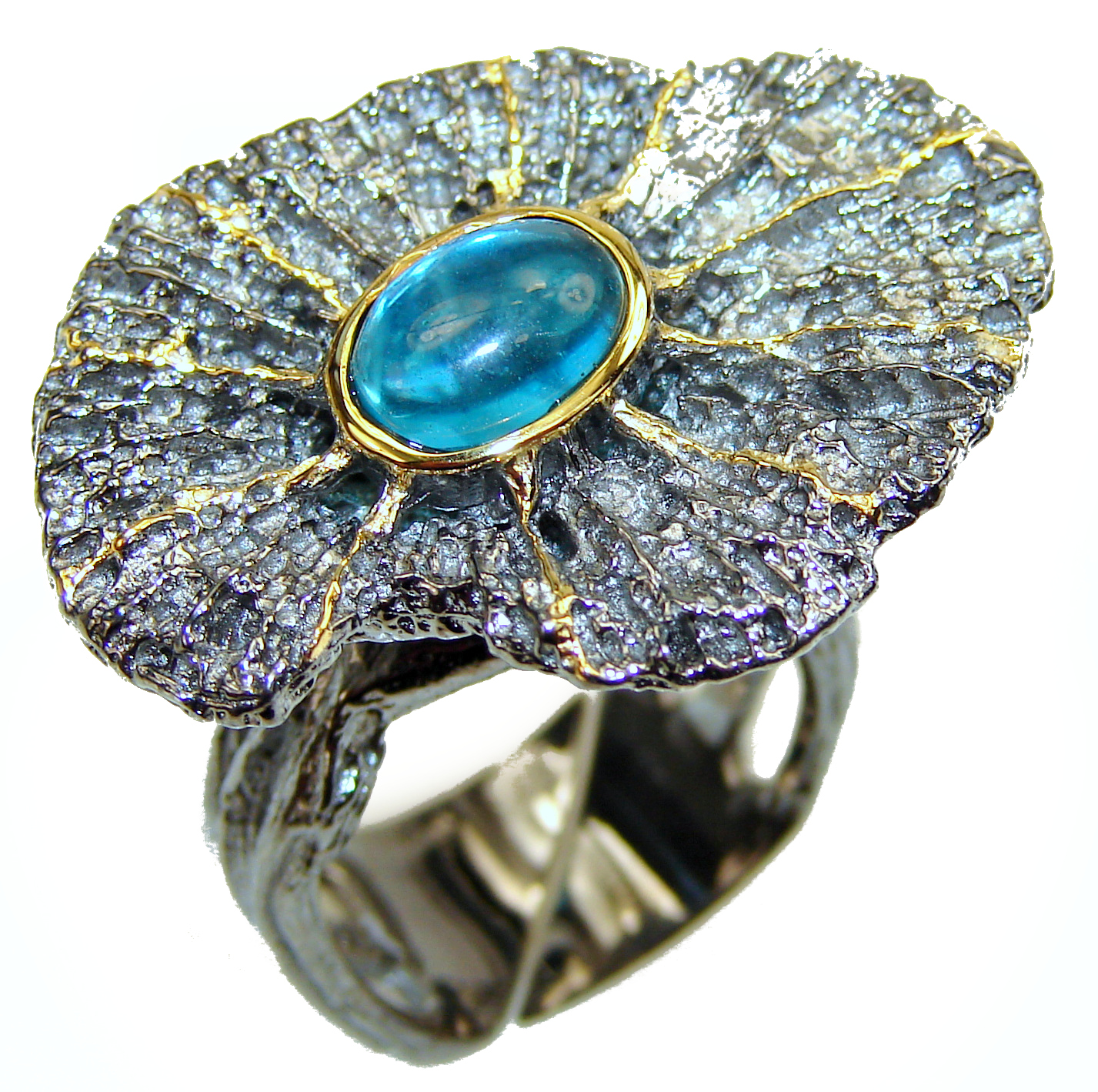 Swiss Blue Topaz black rhodium over .925 Sterling Silver handmade Ring size 6