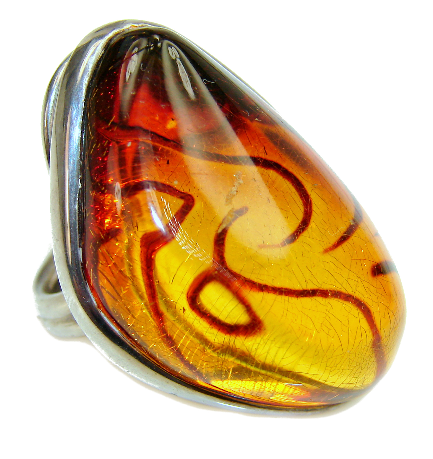 Authentic best quality Baltic Amber .925 Sterling Silver handcrafted ring; s. 8 adjustable