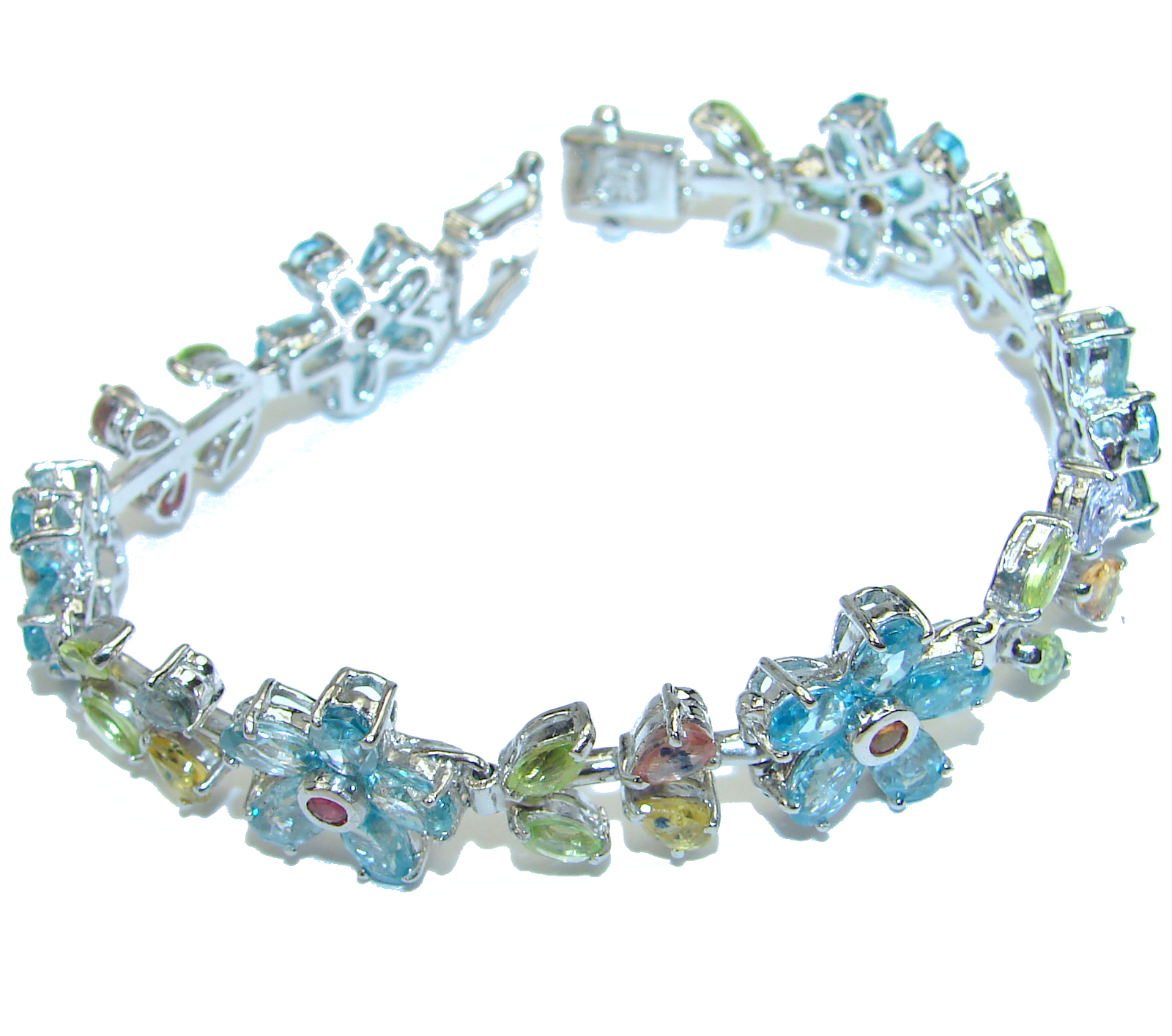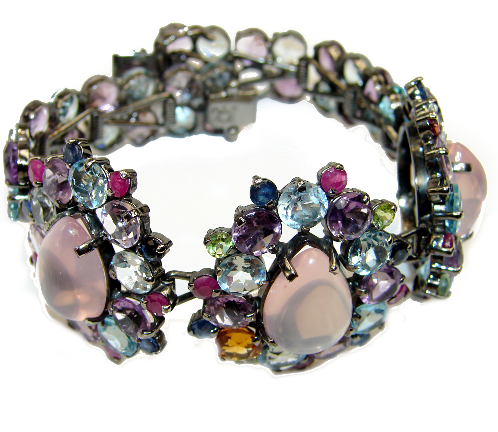 One of the kind genuine Rose Quartz and multigem .925 Sterling Silver Bracelet