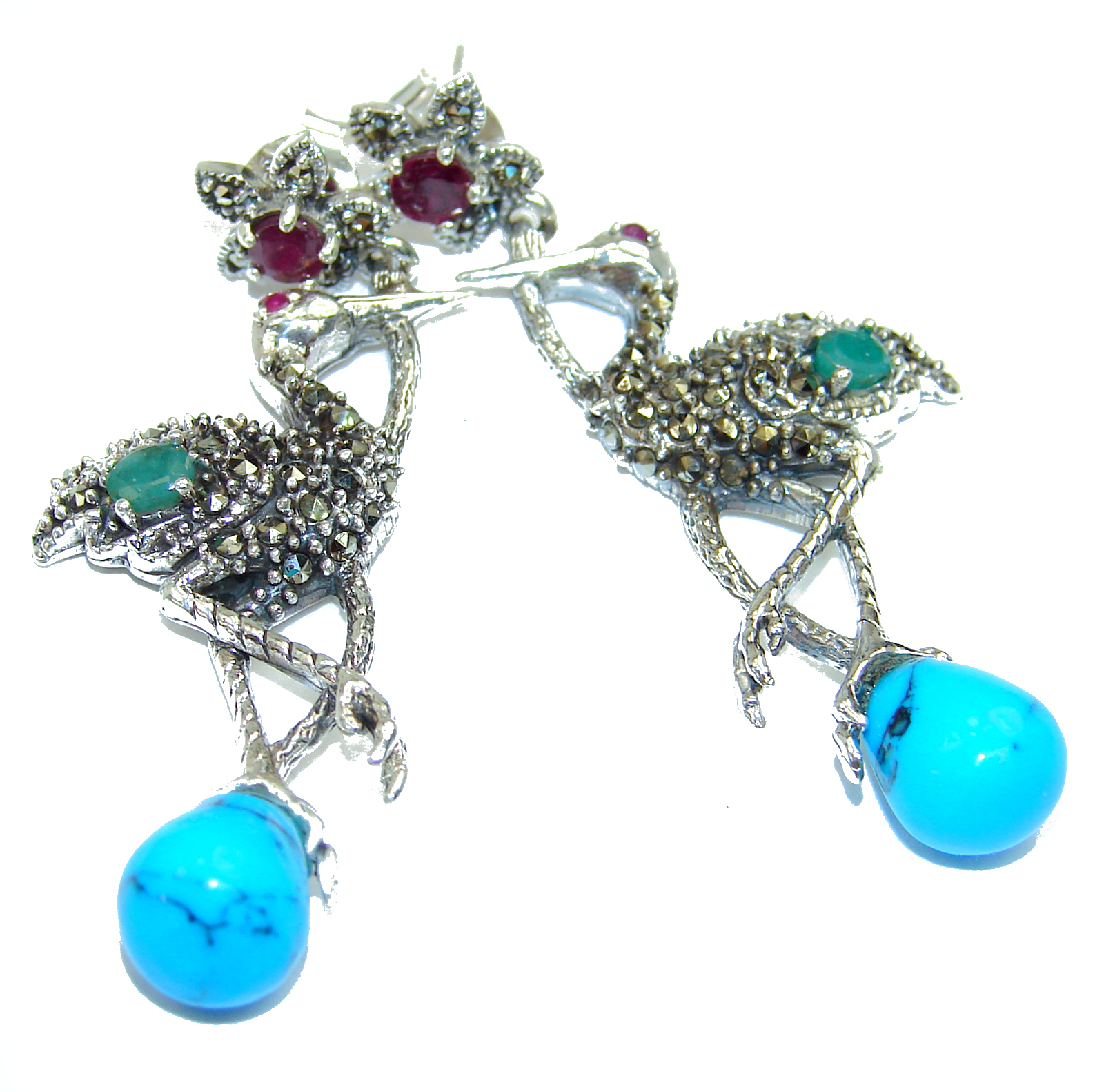 Magestic Herons Genuine Turquoise Ruby .925 Sterling Silver earrings