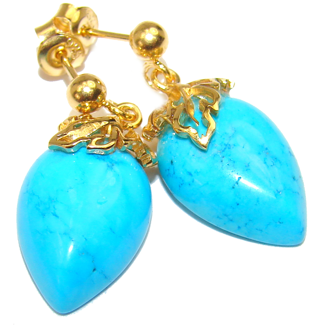 Genuine Sleeping Beauty Turquoise 18K Gold over .925 Sterling Silver handcrafted Earrings