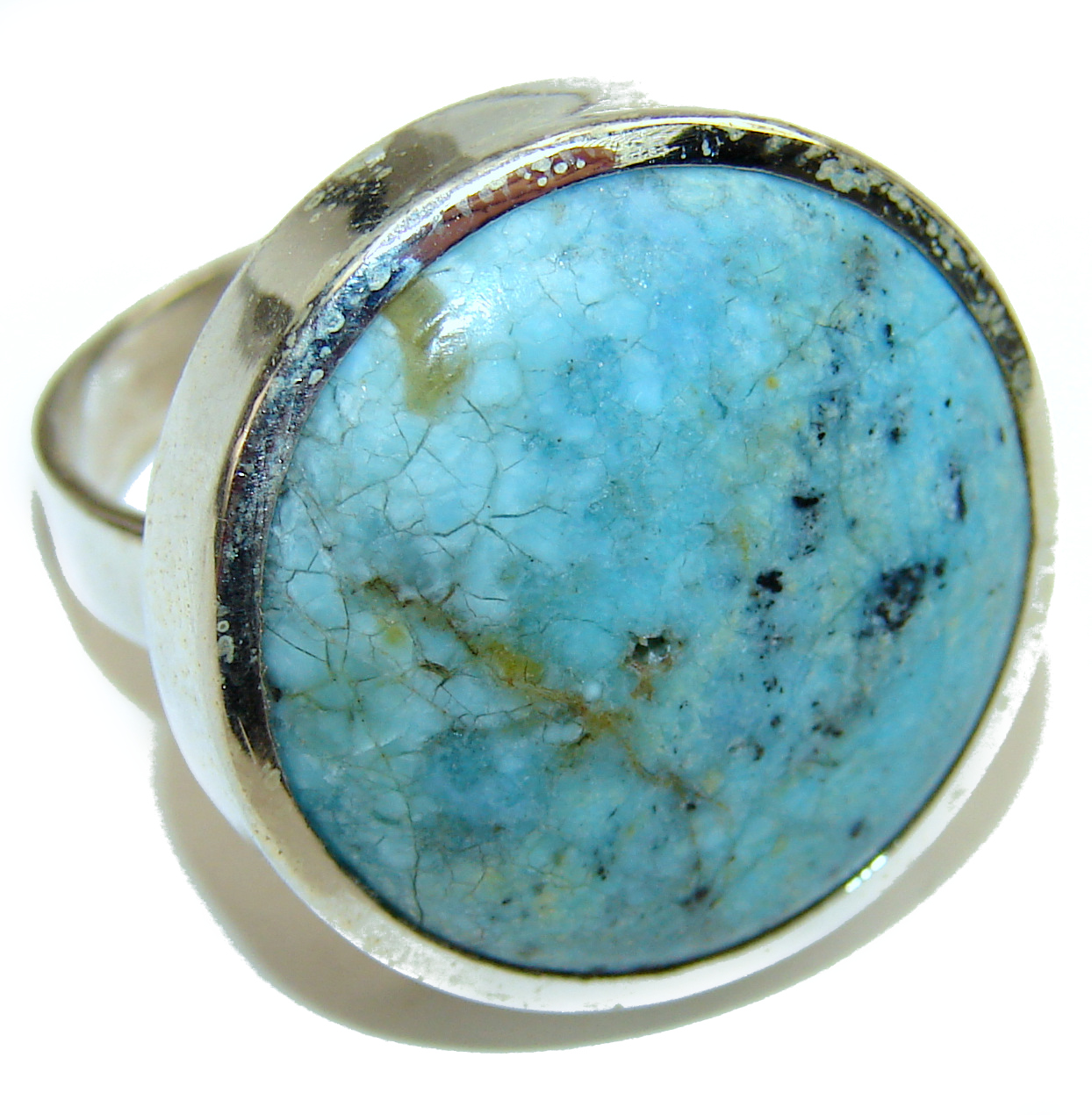 26.6 carat Larimar .925 Sterling Silver handcrafted Ring s. 7 1/4
