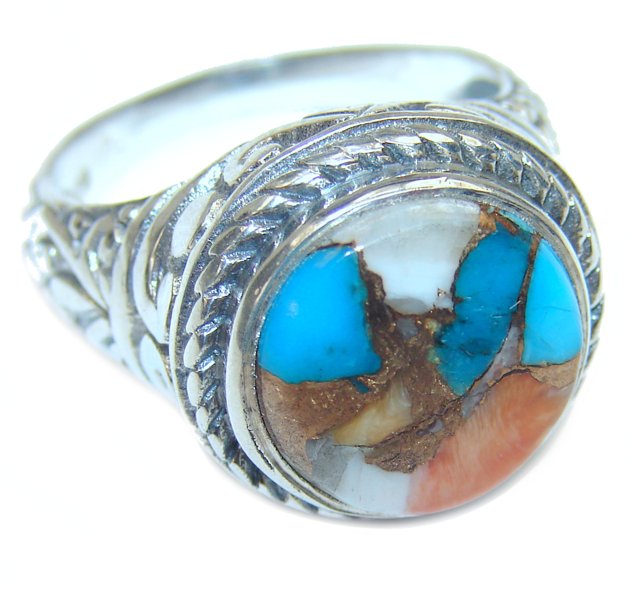 Rare Oyster Turquoise .925 Sterling Silver handcrafted ring; s. 7 1/4