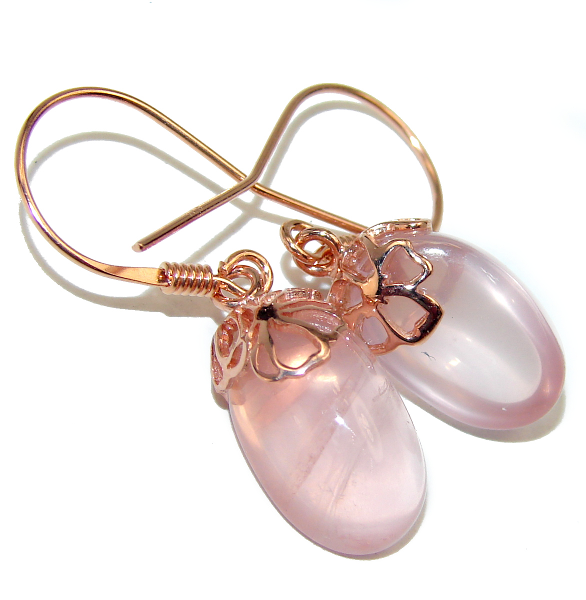 Vintage Style Authentic Rose Quartz 18K Rose Gold over .925 Sterling Silver handcrafted earrings