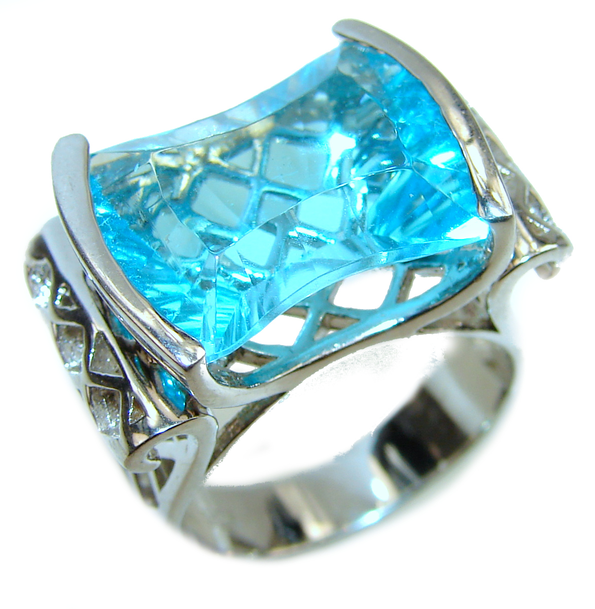 Poseidon Swiss Blue Topaz .925 Sterling Silver handmade Ring size 7 3/4