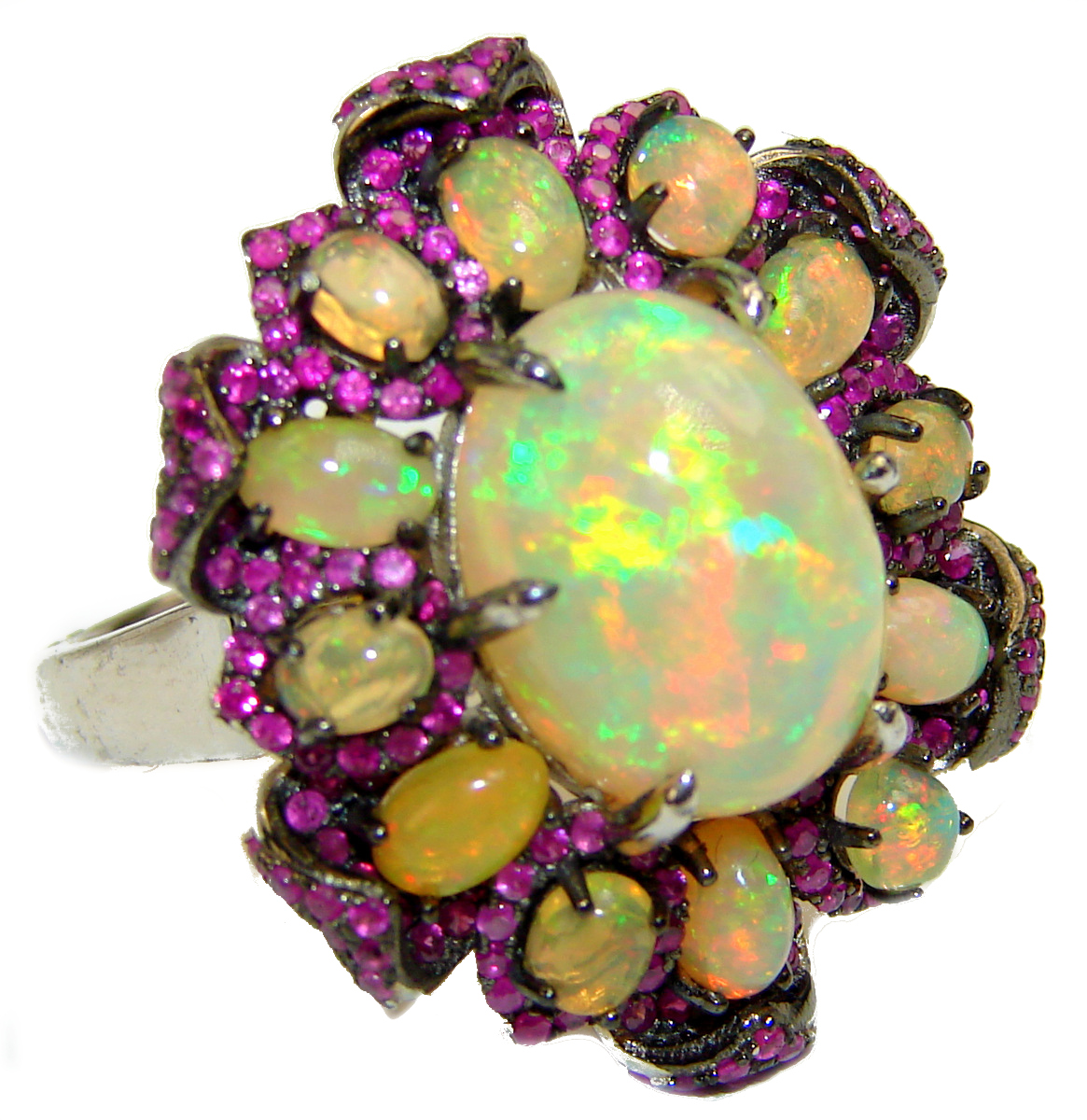Unbelievable beauty Genuine 7.5 carat Ethiopian Opal .925 Sterling Silver handmade Ring size 8