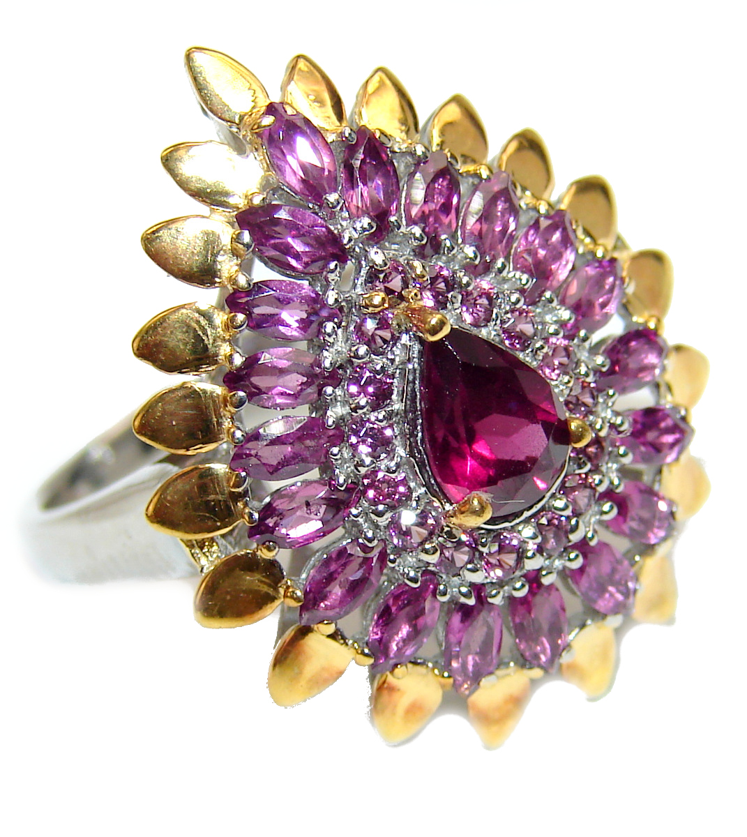 Authentic Garnet 2 tones .925 Sterling Silver handmade Ring s. 9