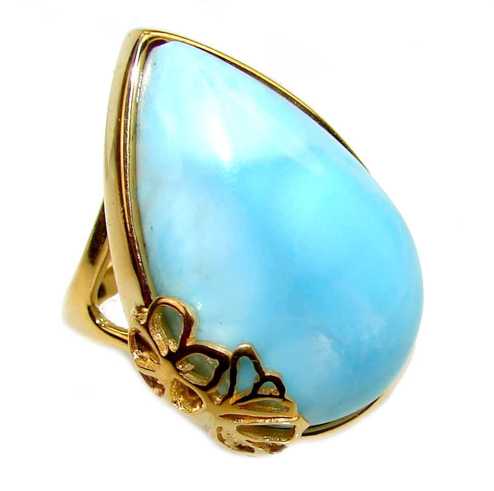 Natural Larimar .925 Sterling Silver handcrafted Ring s. 7 1/4