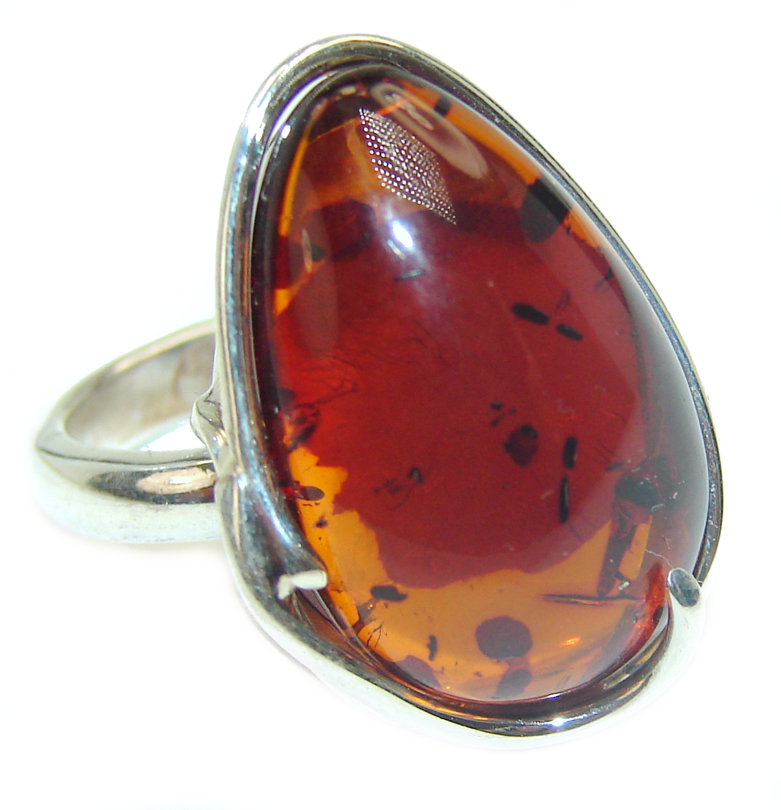 Authentic Baltic Amber .925 Sterling Silver handcrafted ring; s. 6 1/4