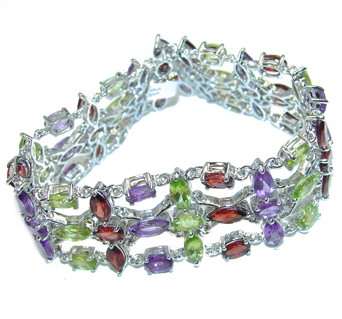 Spectacular Authentic Multigem .925 Sterling Silver handcrafted Bracelet