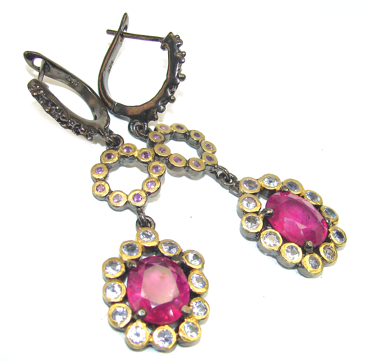 Victorian Beauty Ruby black rhodium over .925 Sterling Silver handcrafted earrings
