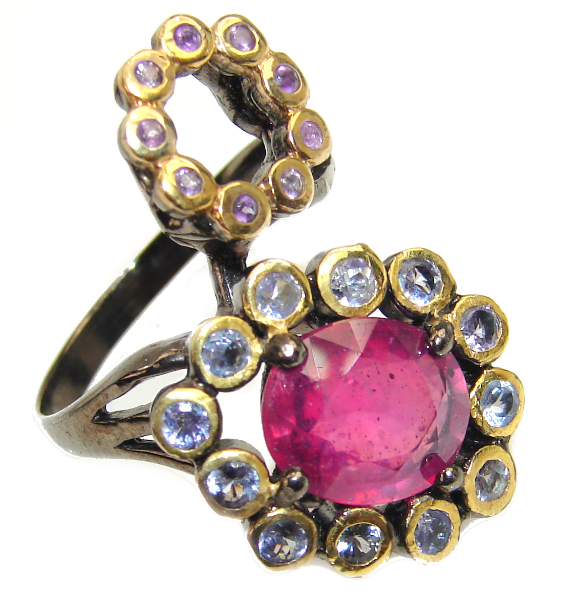 Great quality unique Ruby 18K Black rhodium Gold over .925 Sterling Silver handcrafted Ring size 9