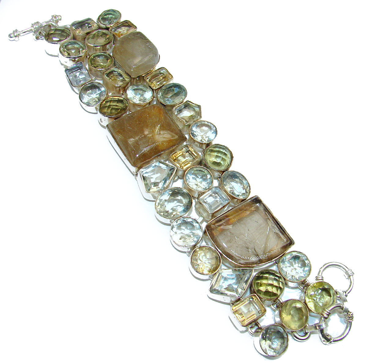Fancy Quality Golden Rutilated Quartz .925 Sterling Silver handcrafted Bracelet
