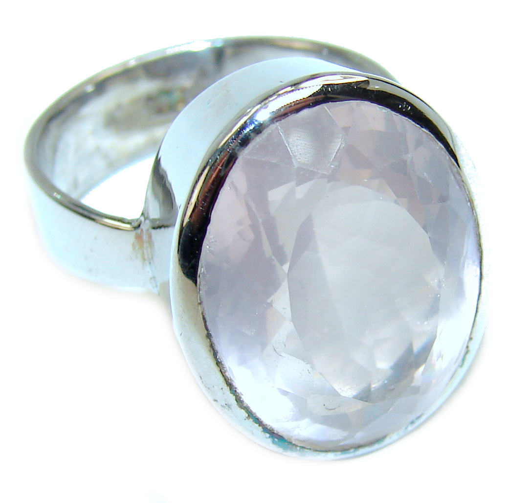 Large 33.2 carat Rose Quartz .925 Sterling Silver brilliantly handcrafted ring s. 8