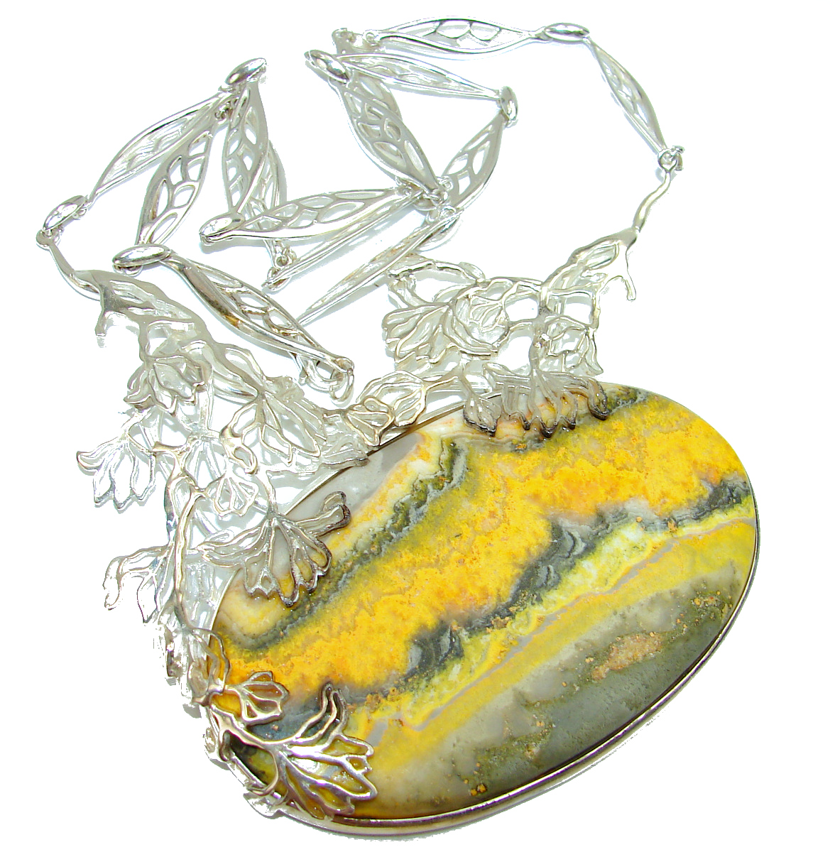 Huge Bohemian Style natural Bumble Bee Jasper .925 Silver handmade Necklace