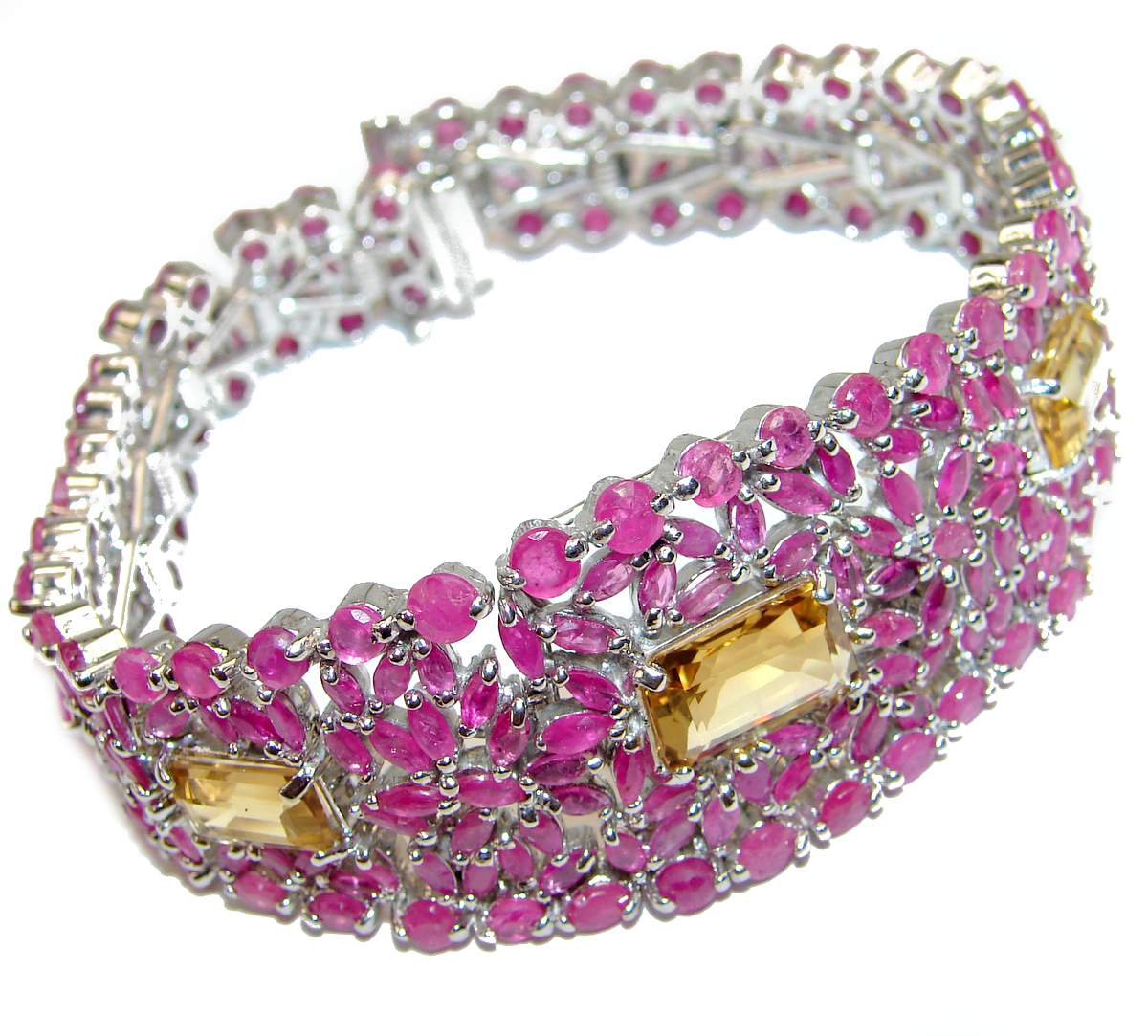 Luxury Victorian Style Authentic Ruby .925 Sterling Silver handmade Large Bracelet