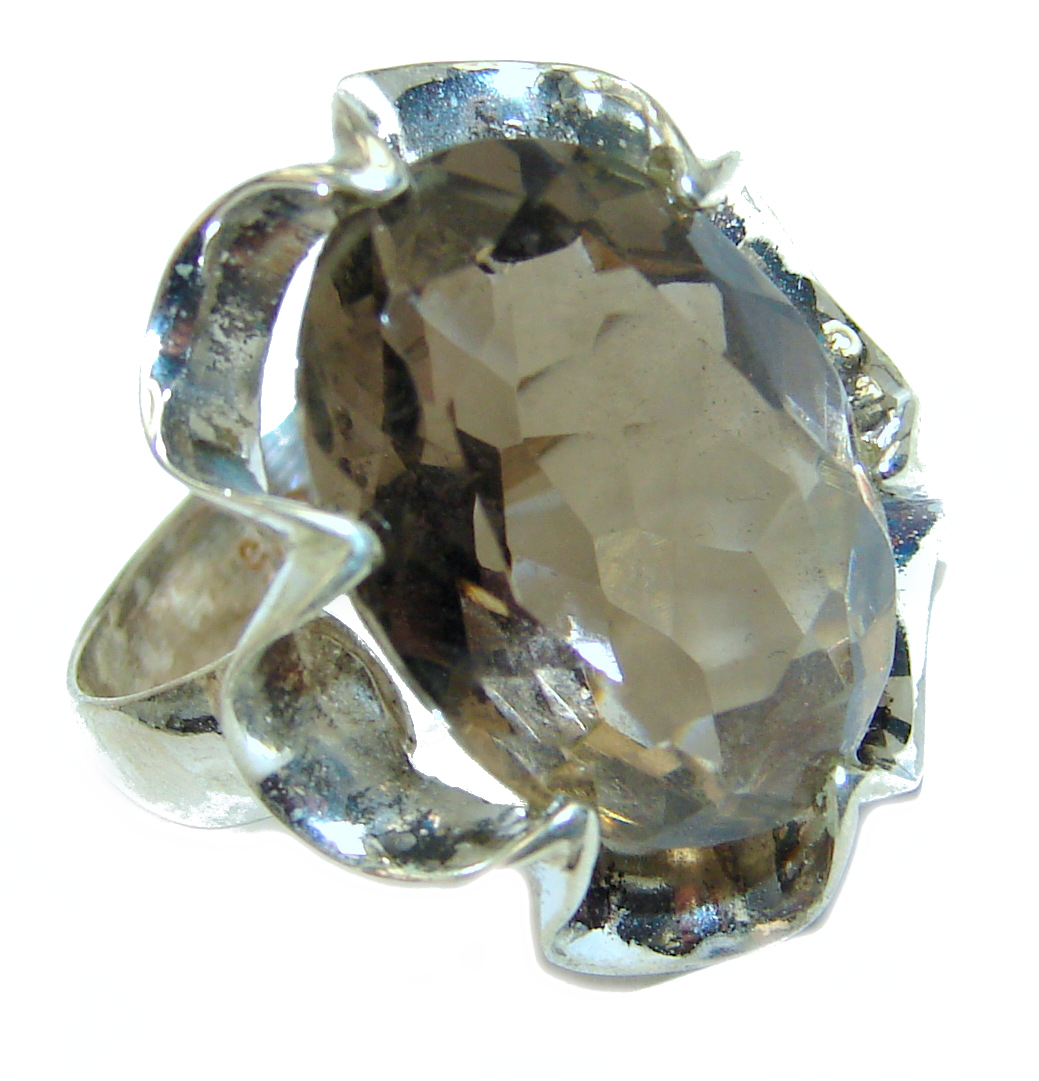 Very Bold Champagne Smoky Topaz 18K Gold over .925 Sterling Silver Ring size 6 1/4