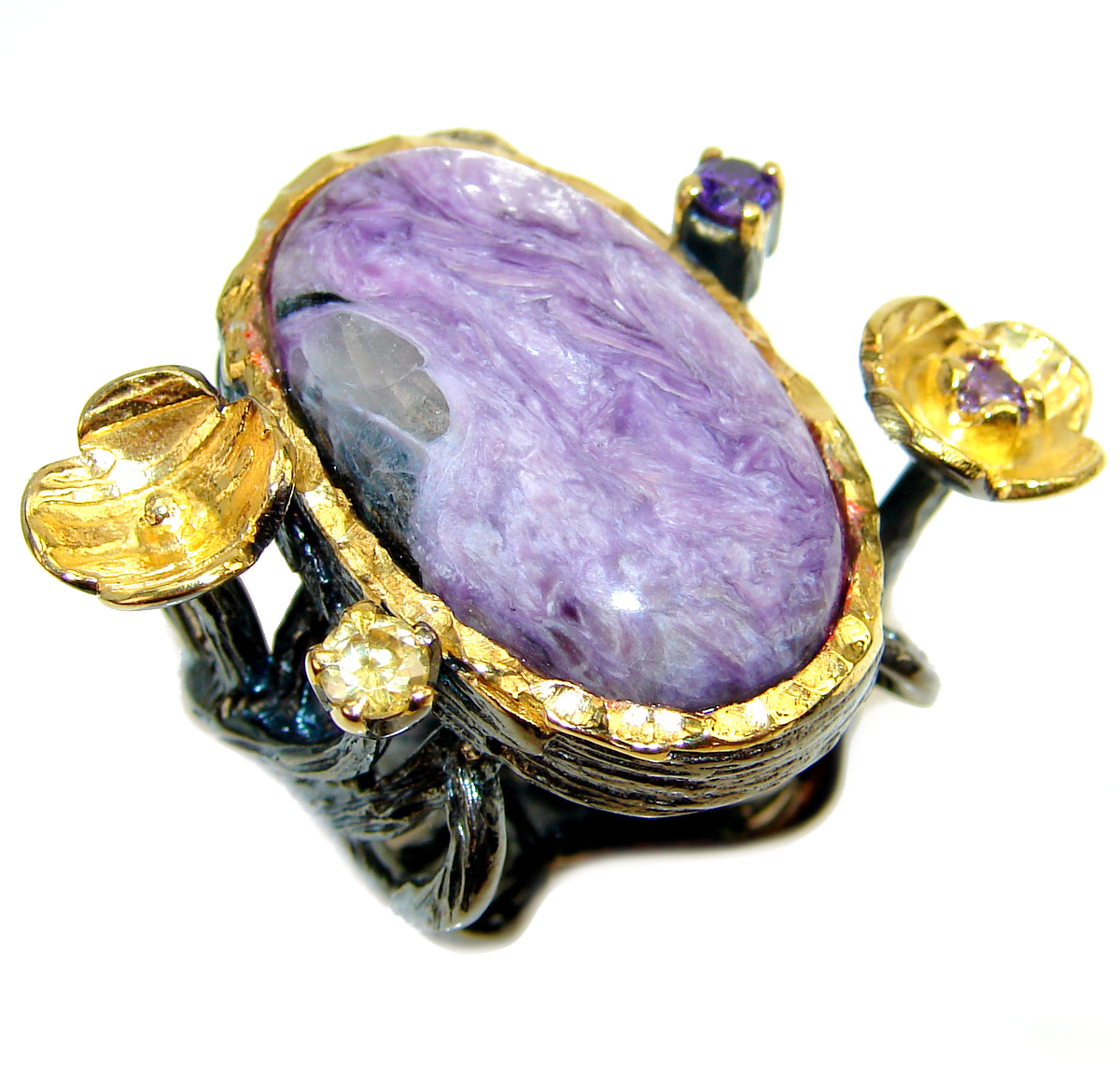 Natural Siberian Charoite .925 Sterling Silver handcrafted ring size 6