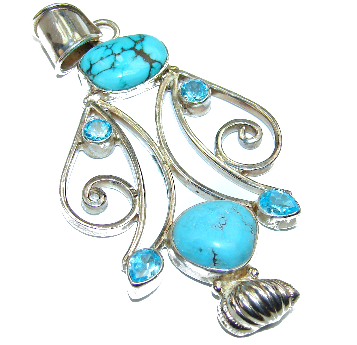 Exquisite Sleeping Beauty Turquoise .925 Sterling Silver handmade Pendant