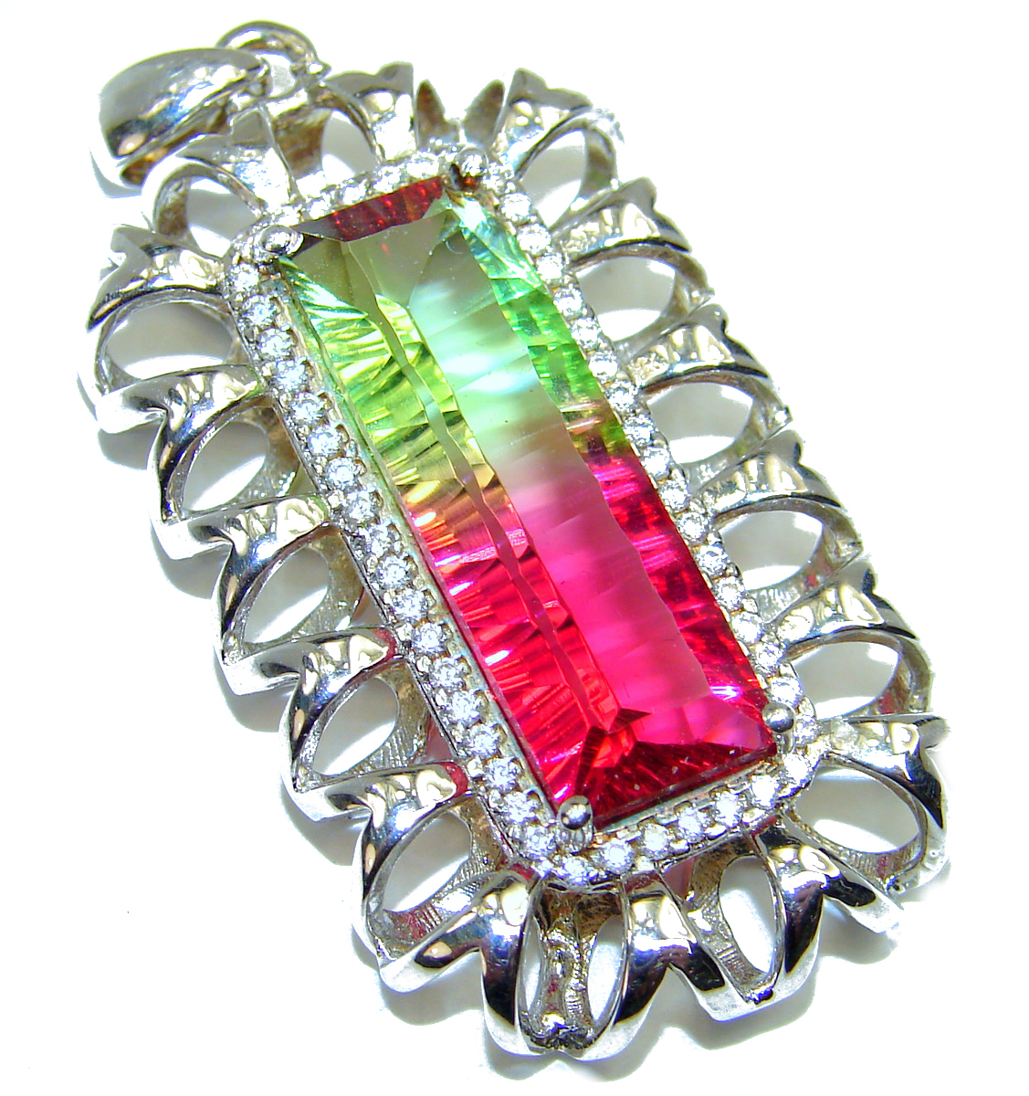 Deluxe Baguette cut Tourmaline .925 Sterling Silver handmade Pendant