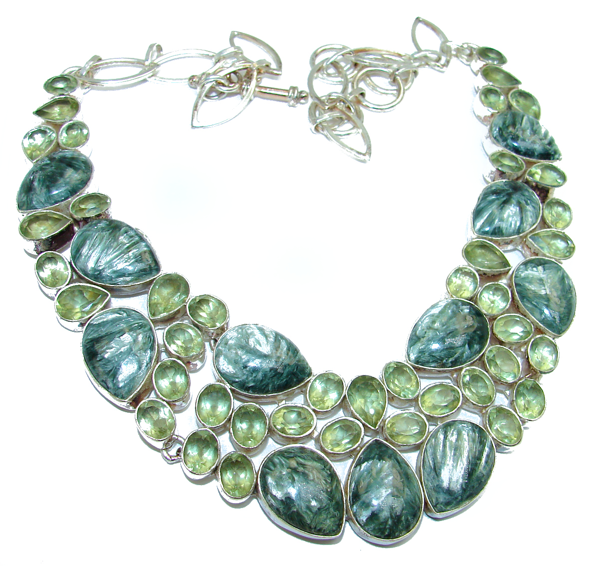 Large Authentic Russian Seraphinite .925 Sterling Silver handmade necklace