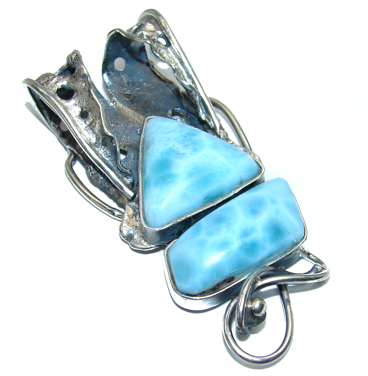 Unique Larimar from Dominican Republic .925 Sterling Silver handmade pendant