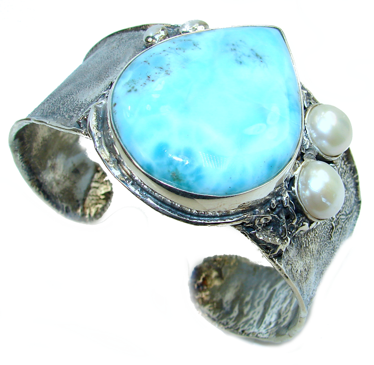 Perfect Harmony Blue Larimar pearl .925 Sterling Silver handcrafted Bracelet / Cuff