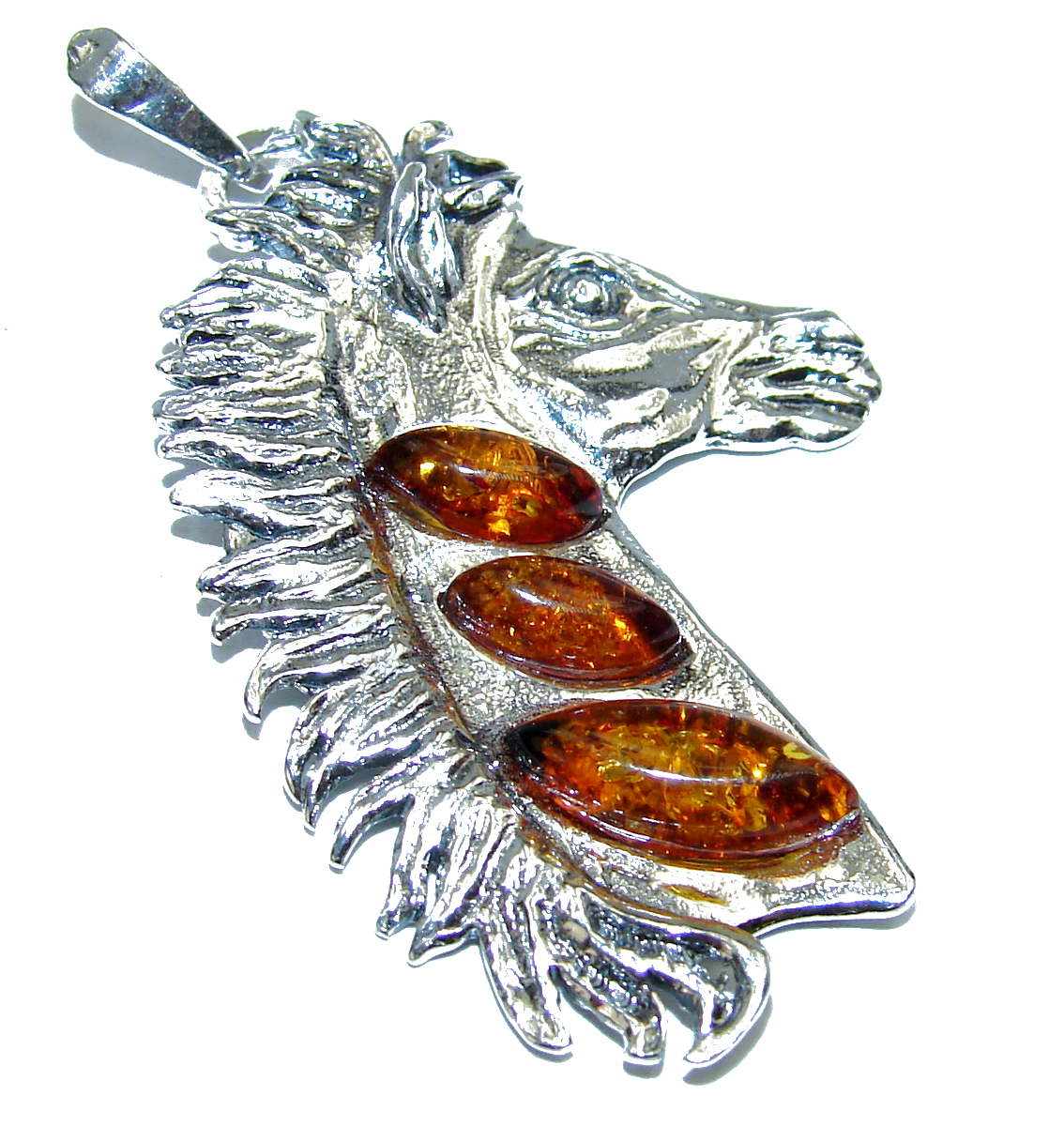 Masterpiece Horse Baltic Polish Amber .925 Sterling Silver Handmade Pendant