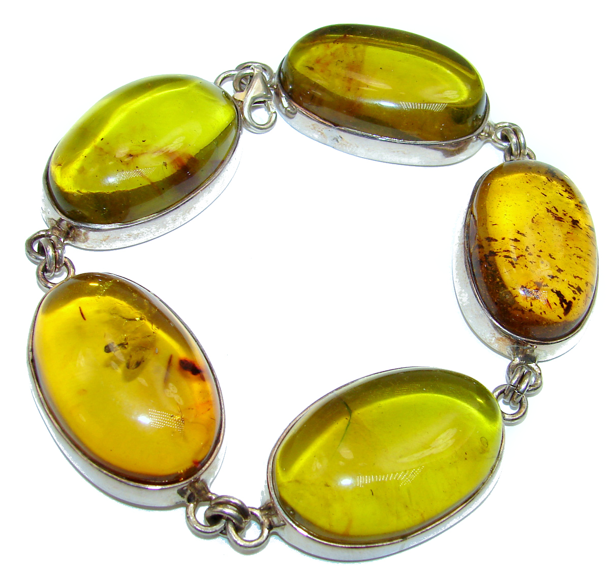 Large Beautiful genuine Green Baltic Amber .925 Sterling Silver handcrafted Bracelet