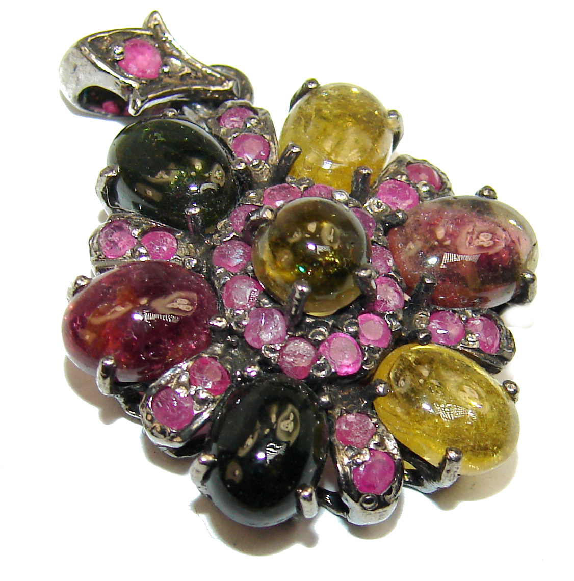 Dolce Vita Brazilian Watermelon Tourmaline black rhodium over .925 Sterling Silver handcrafted pendant
