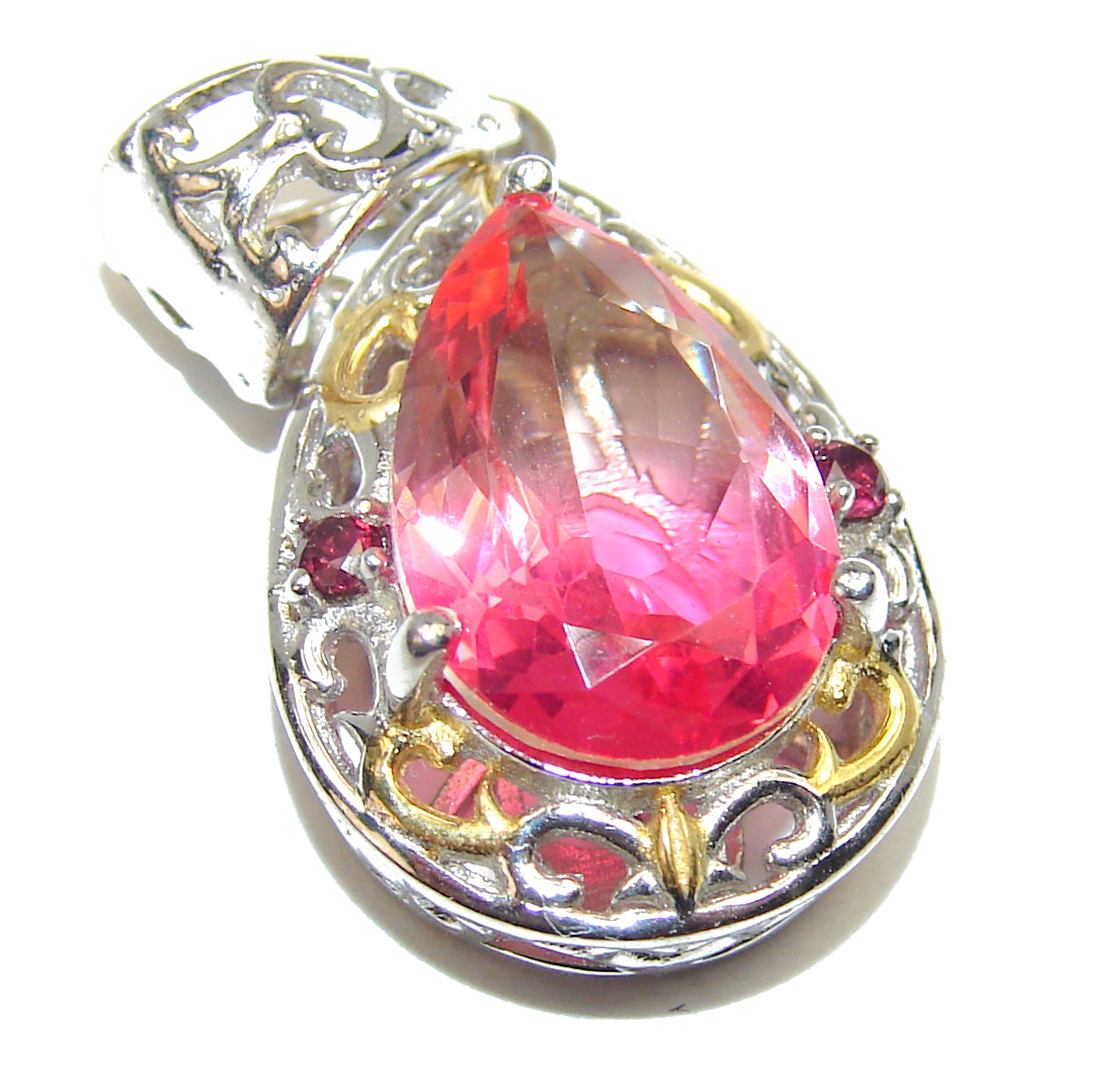 Deluxe pear cut Pink Tourmaline .925 Sterling Silver handmade Pendant