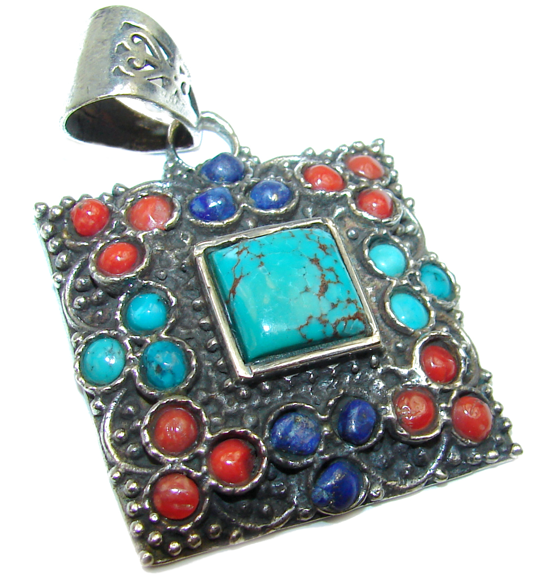 Exquisite Beauty Turquoise .925 Sterling Silver handmade Pendant