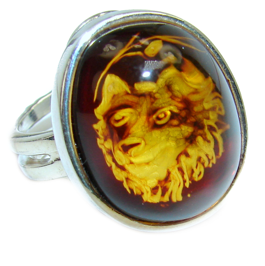 A Wolf Authentic Baltic Amber .925 Sterling Silver handcrafted ring; s. 8 adjustable