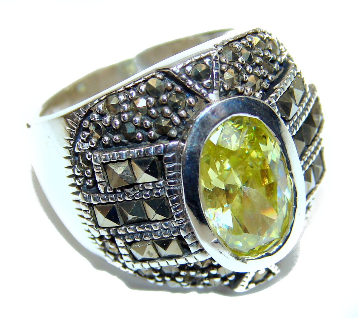 Ultra Fancy Cubic Zirconia .925 Sterling Silver Cocktail ring s. 6