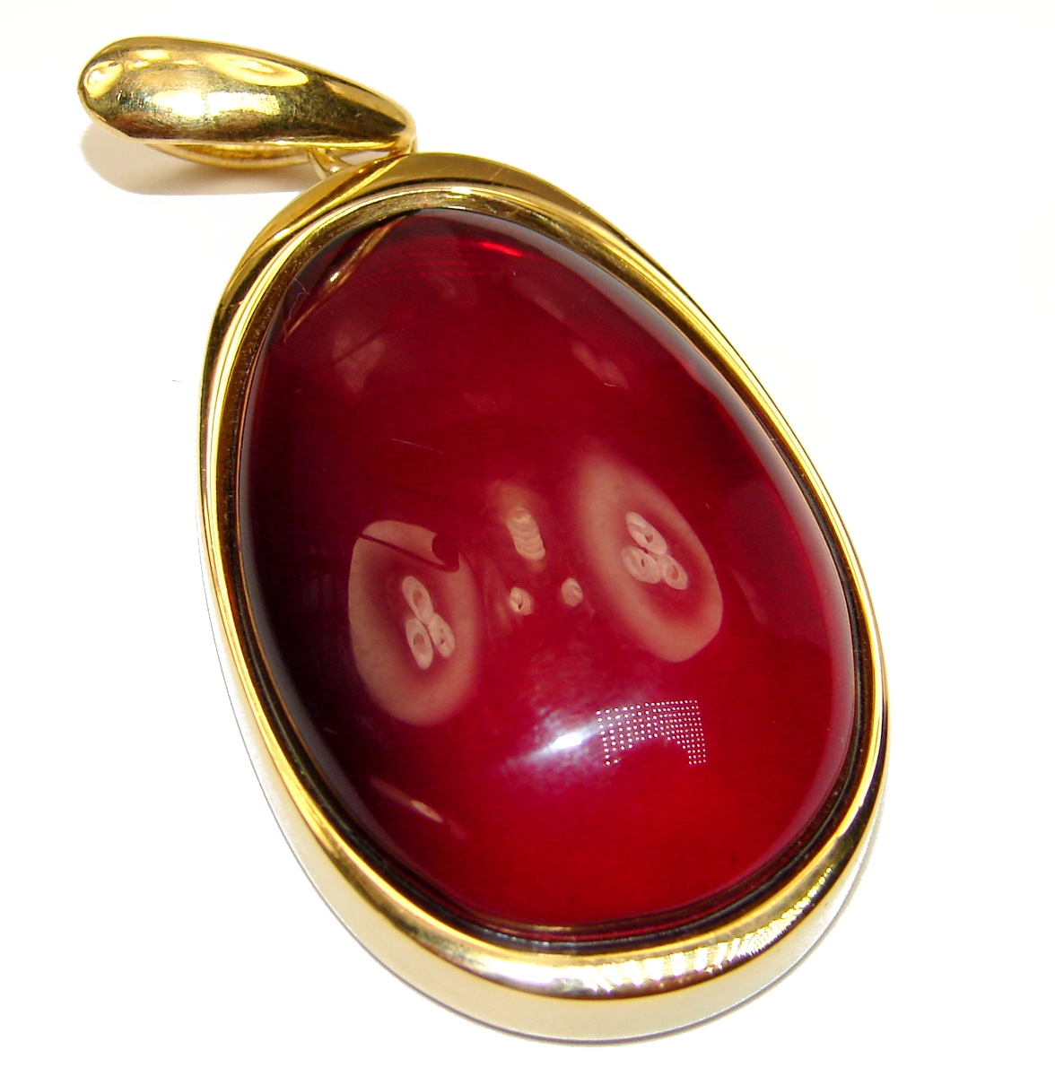 Cherry natural Baltic Amber 18K Gold over .925 Sterling Silver handmade Pendant