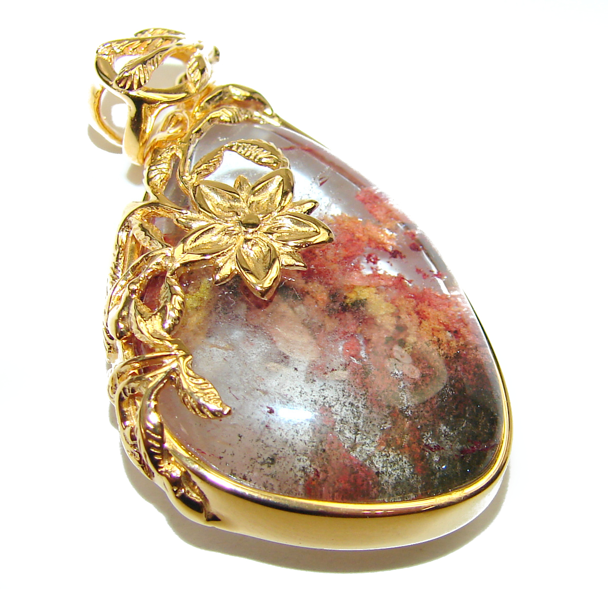 Incredible authentic Phantom Quartz 18K Gold over .925 Sterling Silver handmade pendant