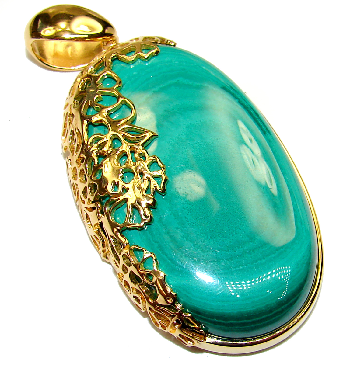 Authentic rare Malachite 14K Gold over .925 Sterling Silver handmade Pendant