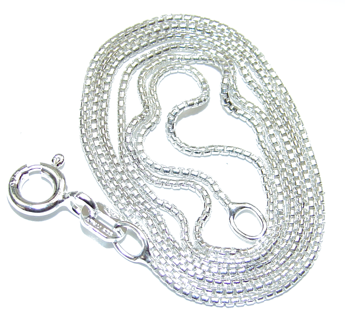 Side Box design Sterling Silver Chain 16'' long, 1 mm wide