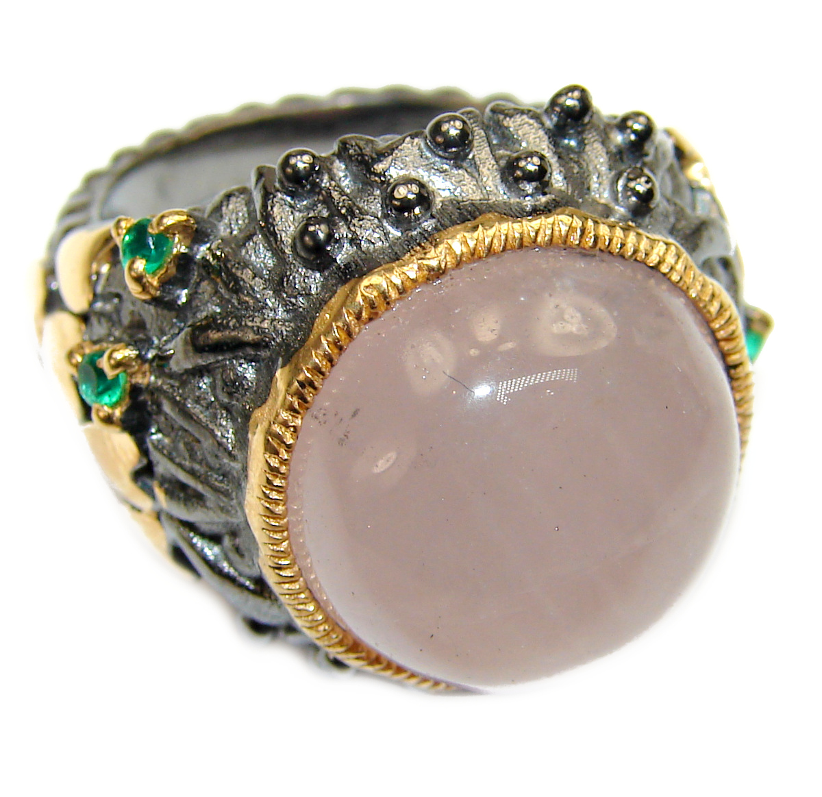 Fancy Rose Quartz rose gold over .925 Sterling Silver handcrafted Statement Ring size 8 1/2