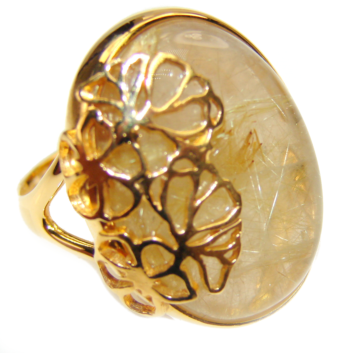 Best quality Golden Rutilated Quartz 18K Gold over .925 Sterling Silver handcrafted Ring Size 6