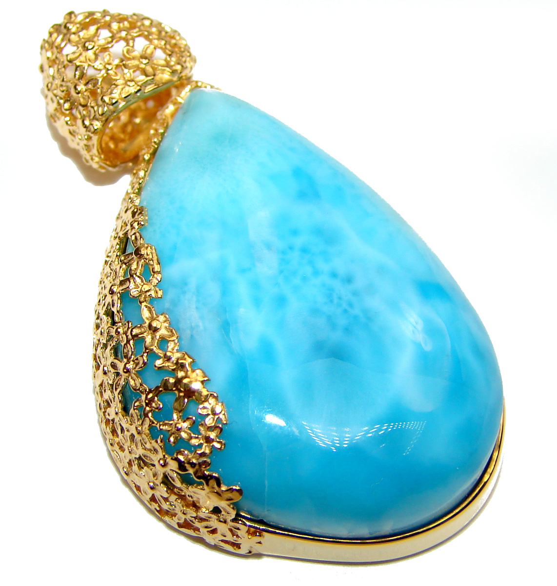 Great quality Larimar from Dominican Republic 24K Gold over .925 Sterling Silver handmade Huge pendant