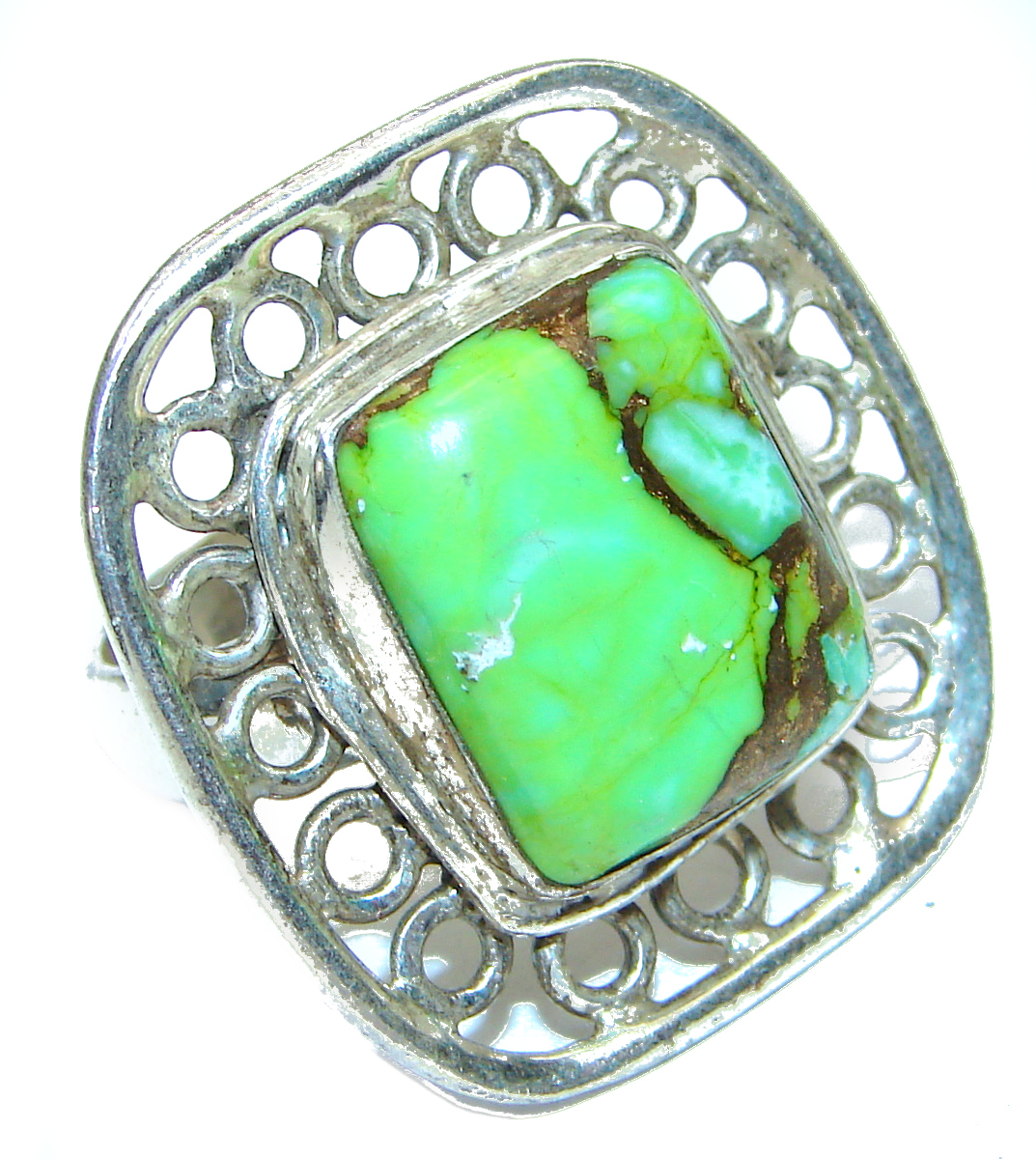 Green Turquoise .925 Sterling Silver handcrafted ring; s. 7 3/4