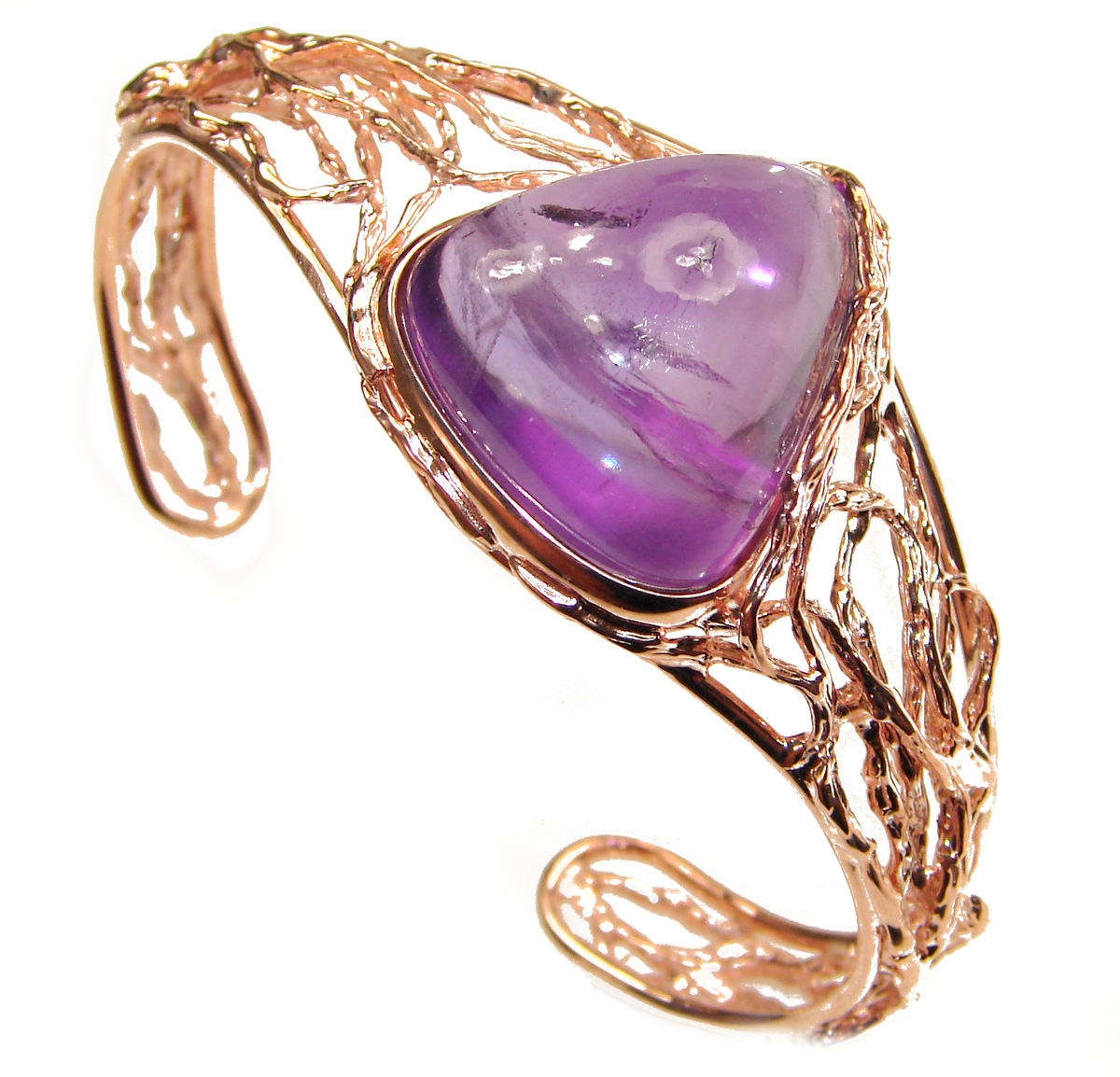 Real Treasure Genuine Amethyst 14K Rose Gold over .925 Sterling Silver handcrafted Bracelet / Cuff