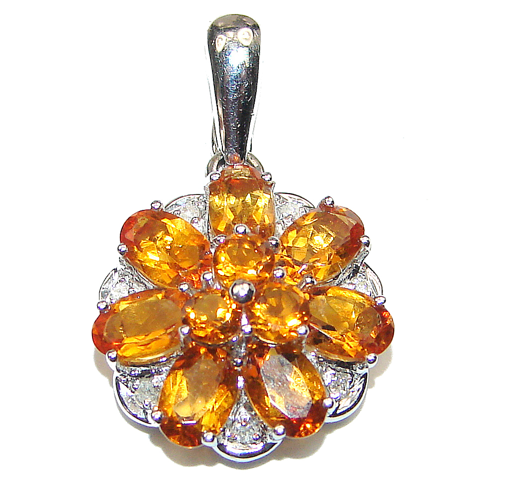 Precious 14K White Gold genuine 3.26 carat Citrine with Diamond Pendant
