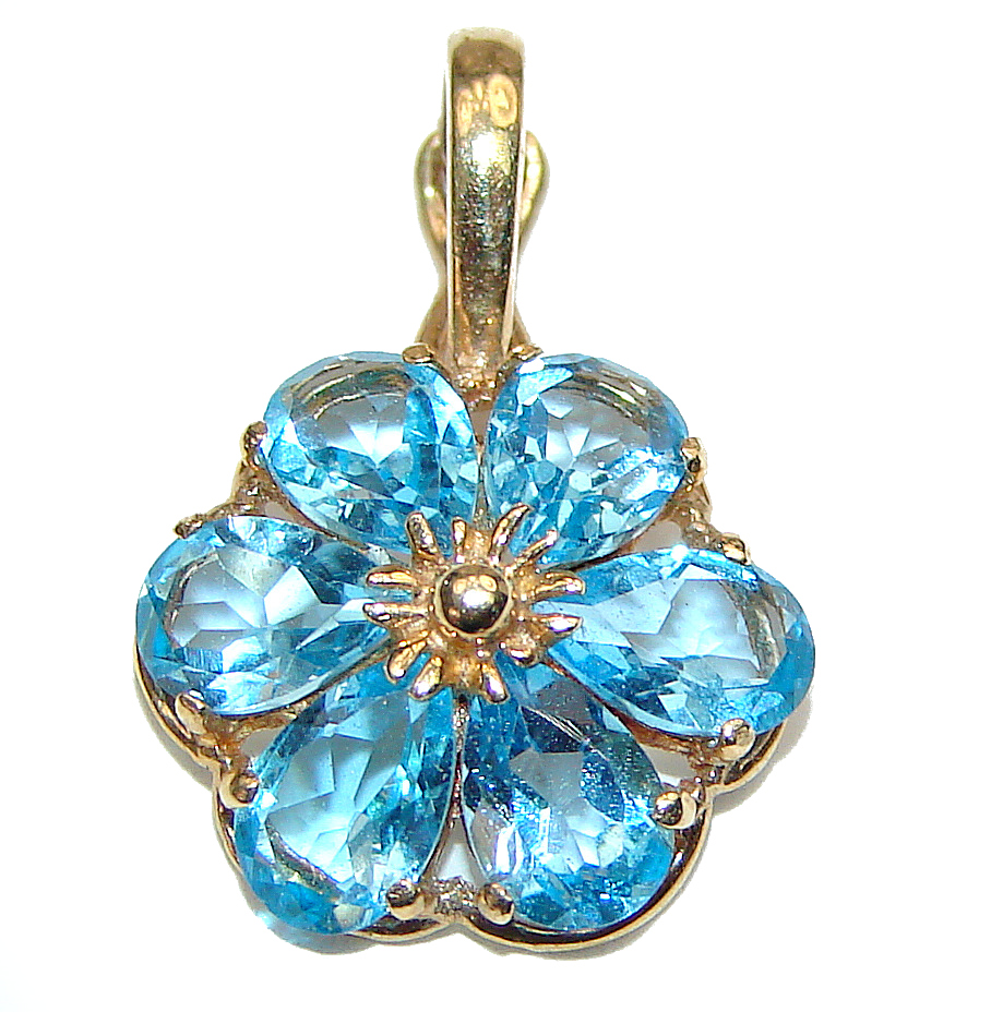 Precious 14K Yellow Gold genuine 1.36 carat Blue Topaz Pendant
