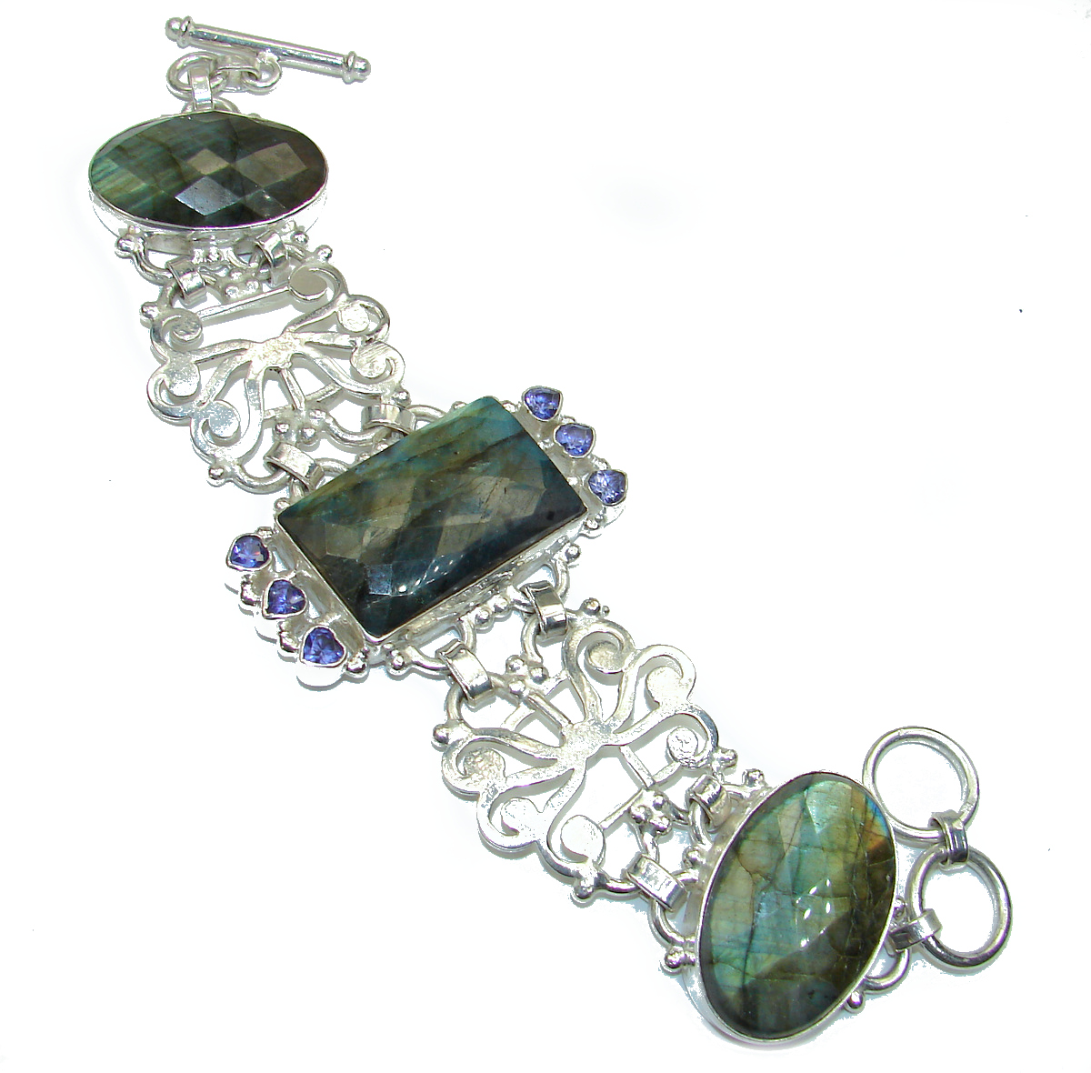 Large Cascade of light GENUINE Labradorite .925 Sterling Silver handmade Bracelet